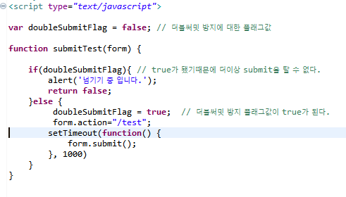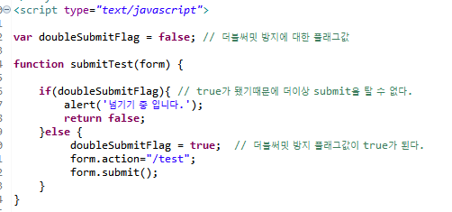 더블써밋 플래그변수로 false 를 부여한 후에 넘기기 버튼을 누르게 되면서 submit을 타게 되면 true가 된다 !