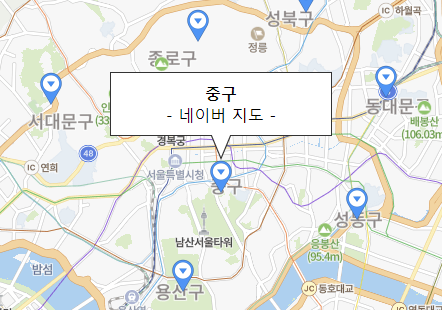▶ 서울 지도위에 만들었던 지역들의 마커들이 표출된다