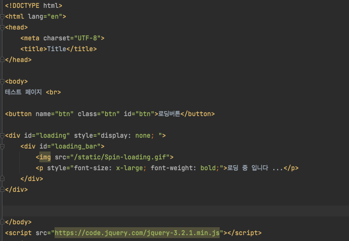 테스트 페이지에서 로딩버튼을 클릭해보면 로딩중입니다.