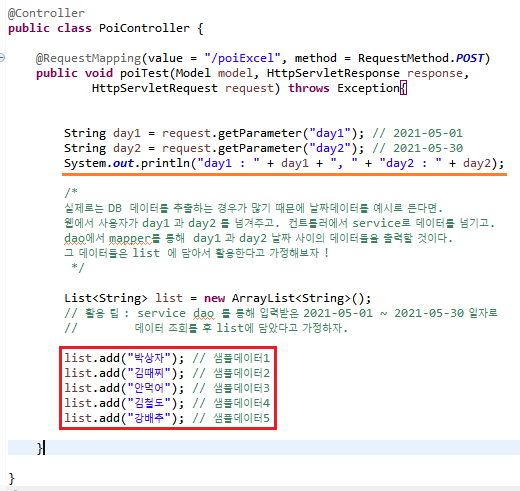 /poiExcel 은 아직 컨트롤러를 작성하지 않았지만, 편의상 미리 작성.