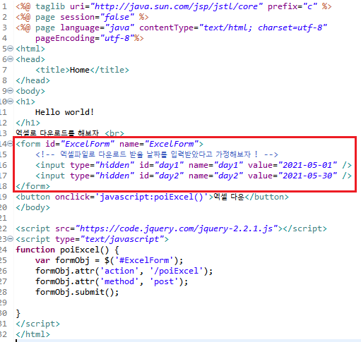 poiExcel() 이라는 함수를 타고, /poiExcel uri로 가져갈거다 !
