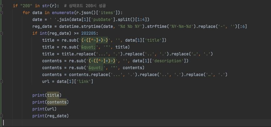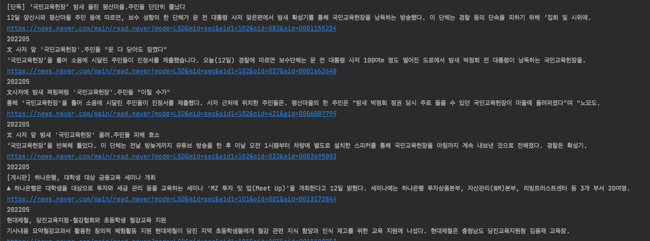 if문에서 2022년 05월 이상의 뉴스만 출력되도록 설정해줬습니다.