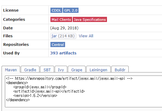 스프링으로 하시는 분들은 pom.xml에 삽입할 수 있는 하단의 Maven dependency 를