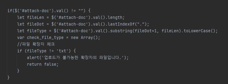 txt 파일이 아닌 경우에는 업로드를 못하게 합니다.