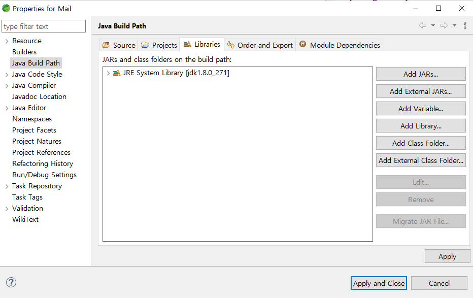 프로젝트 우클릭 > Build Path > Configure Build Path.. 클릭 후